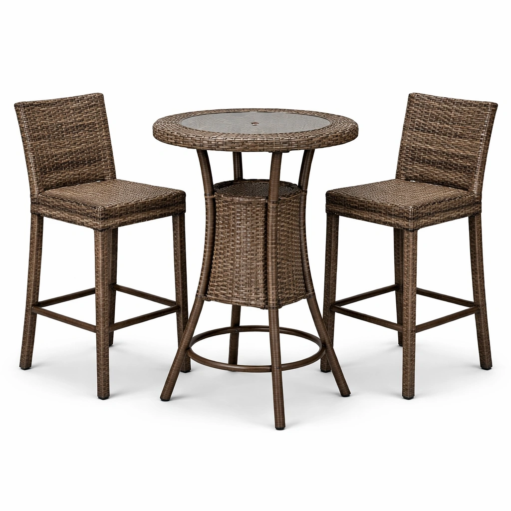 Juego de bar de ratán marrón con encimera de vidrio templado