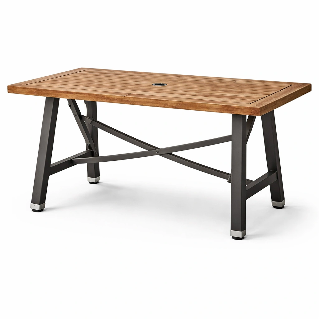 Mesa de comedor exterior de teca y metal 180x90x75 cm